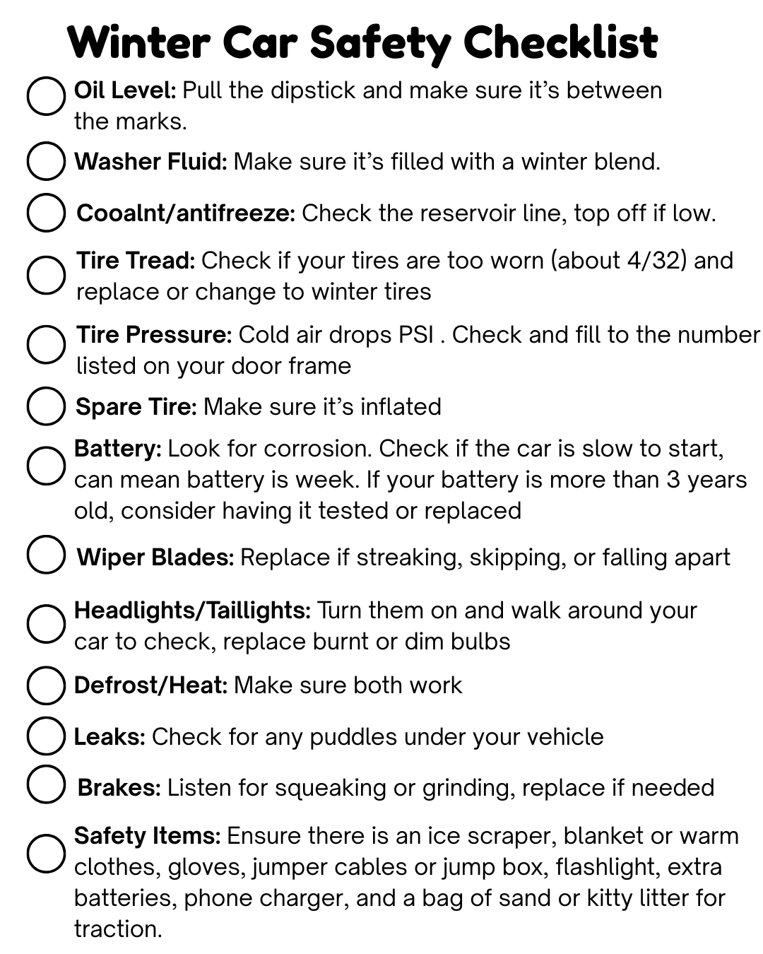 We created a simple, at-home checklist that makes winter car prep easy for Wisconsin drivers. It includes everything listed above in a clean, printable format you can keep in your glovebox. The checklist is available below for download.